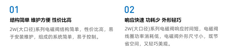 2W(大口徑)系列是二位二通先導(dǎo)式電磁閥,平板式膜片結(jié)構(gòu)啟閉可靠,增強(qiáng)了該產(chǎn)品的使用壽命。