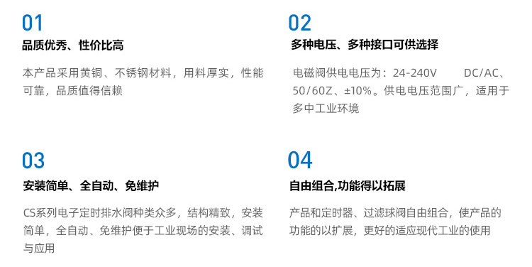 CS720系列不銹鋼閥體電子定時器排水閥,適用于多種場合的冷凝水自動排放及自動灌溉系統(tǒng),有多種電壓接口可選,間隔時間和工作時間可調(diào)。