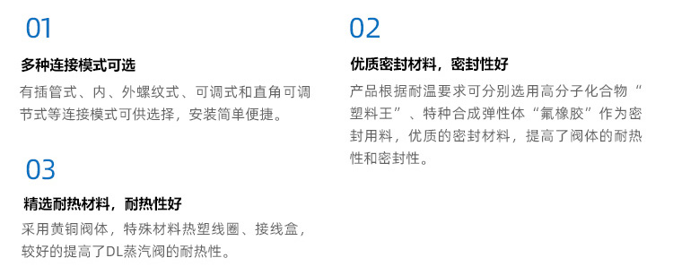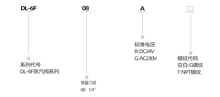 DL-6F型二位二通直動式高溫蒸汽電磁閥,可獨立安裝在熨燙設(shè)備上,電氣部分防水性能好,有插管式、內(nèi)、外螺紋式、可調(diào)式和直角可調(diào)式。