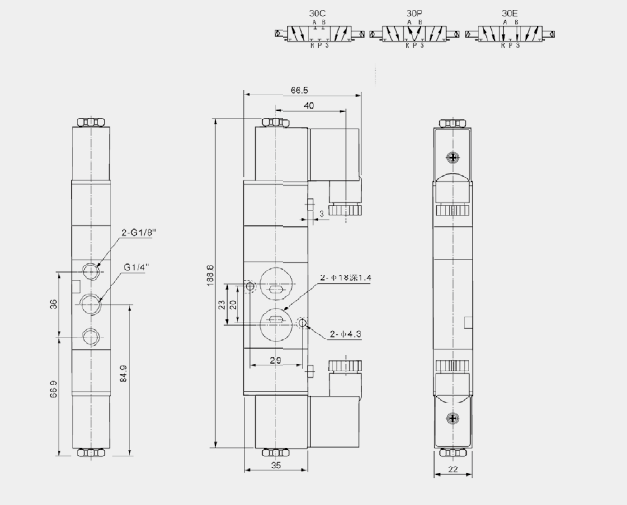| 名稱: | 4V200系列二位五通雙頭三位置封閉型電磁閥 |