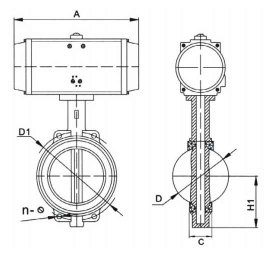 | 型號 | 接口螺紋 | D | D1 | H1 | A | C | n-d | 執(zhí)行器 | |